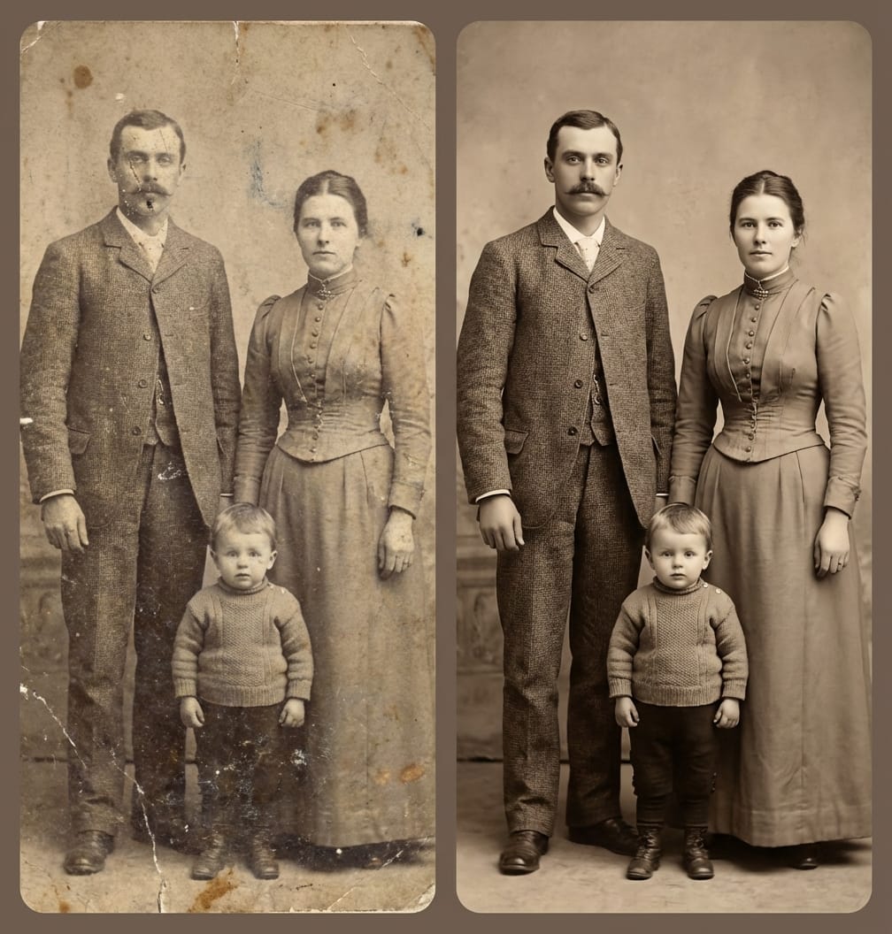 Transforma fotos antiguas mejorando los detalles faciales y restaurando tonos naturales. Ya sean retratos vintage o fotos familiares, da nueva vida a recuerdos preciados con claridad refinada.